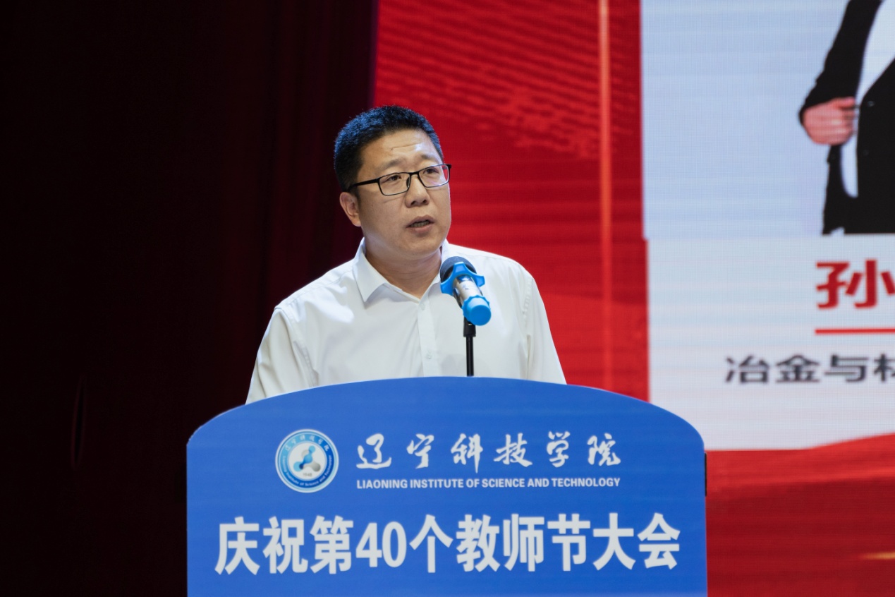 党委书记赵毅在大会上发表讲话。赵毅指出,KYTY.COM开云在习近平新时代中国特色社会主义思想指导下,以实干的状态和拼搏的常态努力践行“为党育人,为国育才”的神圣使命,坚持应用型办学特色,深化教育综合改革,着力提升人才培养质量,取得了显著的成绩。全体教师恪尽职守、默默耕耘,为学生的成长成才付出了辛勤汗水,为学校的高质量发展作出了突出贡献。赵毅强调,当前和今后一个时期,是学校发展的关键时期,全体教师一是要以政治坚定、情怀深厚的理想信念铸魂。要学习贯彻好党的二十届三中全会精神,主动思考、认真作答“强国建设,高校何为”“辽宁振兴,辽科何为”的时代命题,坚定心有大我、至诚报国的理想信念,深植于国家和民族大业,将个人职业之“小我”,面向教育事业之“大我”,在实现学校高质量发展中施展抱负、建功立业。二是要以自律自省、品行高尚的道德情操立身。要时刻铭记教书育人的使命,严于律己,从严治教,把师德师风摆在首要位置,以人格魅力引导学生心灵,以学术造诣开启学生的智慧之门,传承弘扬优良教风,锤炼“钢铁品质”,以德立身、以德立学、以德施教。三是要以改革创新、格局宏大的广泛学识立学。要不断拓展知识视野、更新理念方法,以学校本科教育教学审核评估和硕士点建设单位申报工作作为“校之要事”“校之大事”,练就过硬本领,提升专业能力,坚定当好深化教育综合改革的实干家,努力成为业务精湛、学生喜爱的高素质教师,使学校特色化、差异化、应用型发展之路行稳致远。四是要以乐教爱生、甘于奉献的仁爱之心树人。要与学生建立良善、信任、尊重的关系,以满腔赤诚的心投入教育事业,用纯粹无私的爱助力学生成才,弘扬辽宁“六地”红色文化,秉承“明道明德、求新求实”的辽科校训,讲好“坚韧不拔、百炼成钢”的具有辽科气质的红色故事,用心用情用爱涵育润泽学生的心灵,实现知识技能传授和思想价值引领的有机统一,引领学生担起强国复兴、振兴发展的时代大任。