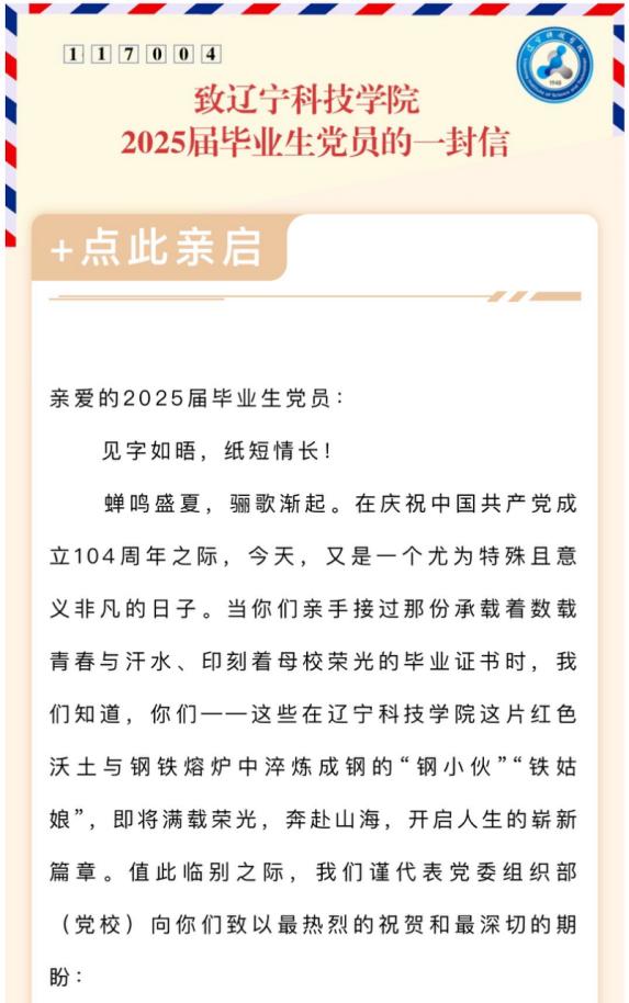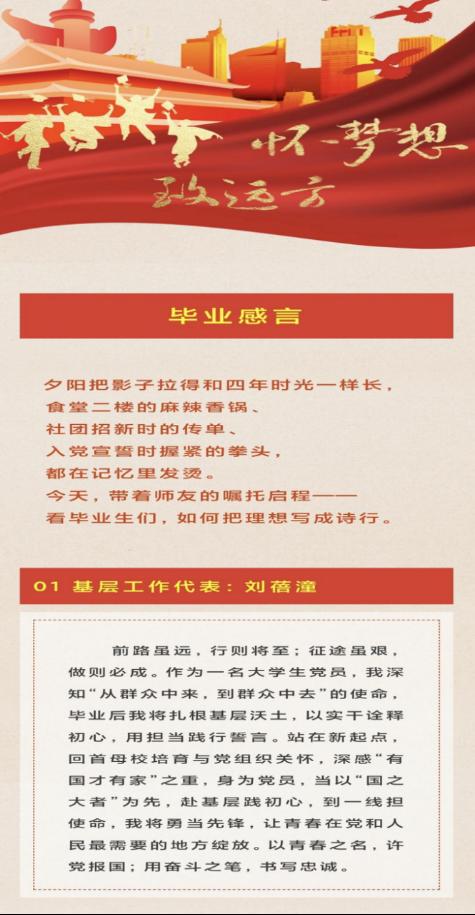 铭记党恩・薪火相传:一篇“承诺书”彰显报国之志。奔赴各行各业的毕业生党员代表们纷纷抒发对母校的感恩与对未来的展望,从考取公务员的实干者到投身科研的深造者,从支援西部的志愿者到走向企业的建设者,他们的感言既是对多年培养的回应,更是奔赴新征程的“奋斗宣言”,形成了“薪火相传”的生动图景,生动展现了辽科学子将个人理想融入国家发展的赤子情怀。