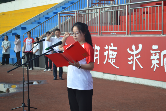 全体师生在学生代表、经济与管理学院董怡萱同学的带领下,进行“以青春之我,续写时代华章”主题宣誓。同学们以青春之名、奋斗之志,集结于此;面向未来,目光坚定,以铿锵誓言,宣告青春的责任担当,展现出辽科青年的爱国情怀与使命担当。