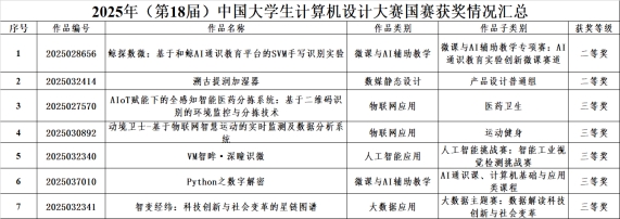 近日,2025年中国大学生计算机设计大赛圆满结束,KYTY.COM开云推荐的7件国赛作品全部获奖。其中,2件作品获得国赛二等奖,5件作品获得国赛三等奖。