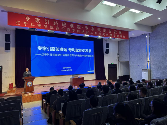 本溪市知识产权局运用促进和服务科科长费晶晶,辽宁省沈抚示范区辽苏中高知识产权有限公司副总经理张春娜、业务专员薛开宇,学校各学院科研副院长、先锋科研团队成员、博士代表、科技处工作人员参加培训。