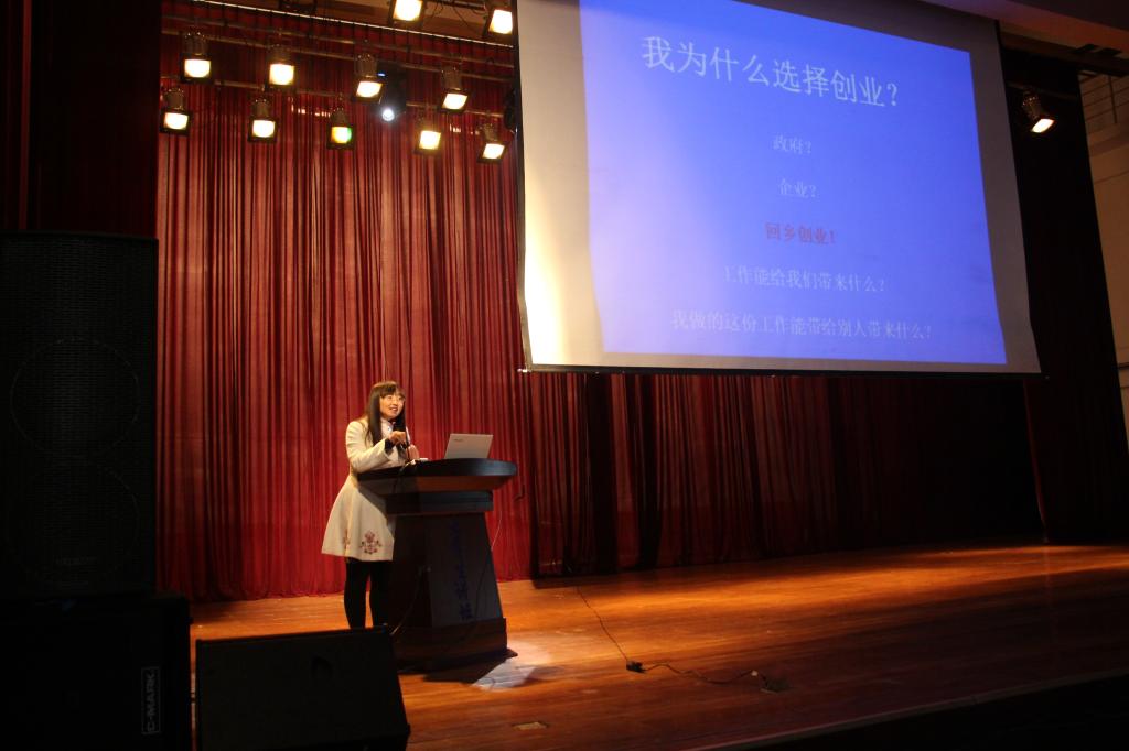 报告会上,孙丽金用朴实无华的语言向同学们讲诉了自己的创业历程,分享了自己参加创业大赛及运用“互联网+”开展市场营销的心得,以及她作为基层青年自主创业的典型随从习近平总书记出访越南的感悟。并用习总书记的话激励同学们,“现在,青春是用来奋斗的;将来,青春是用来回忆的。”最后,她用“青年创业,中国强!”结束了报告会。报告会气氛热烈、精彩不断,在同学们中引起强烈的共鸣,激发了广大同学就业创业的热情。会后,孙丽金被我校聘为就业创业导师。