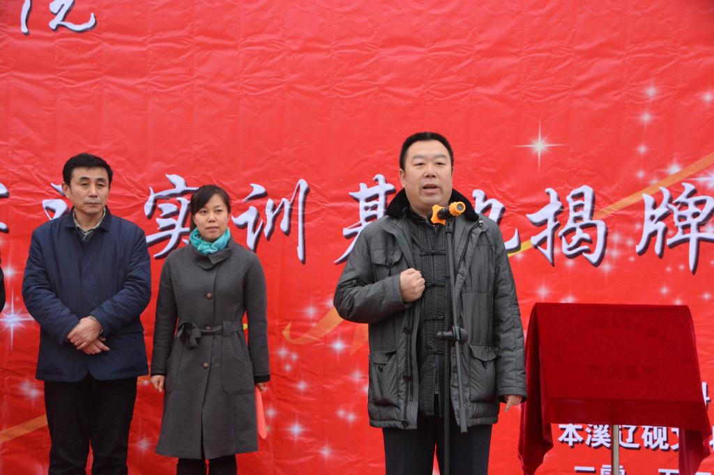 揭牌仪式上,副校长丛树林致辞。丛树林表示,本溪辽砚文化艺术有限公司作为本溪市辽砚行业的龙头品牌,其公司的辽砚产品以精美、独特、韵味十足收到收藏爱好者的喜爱,更成为本溪的文化产业名牌。我校此次与本溪辽砚文化艺术有限公司的深度合作将我校的大学生创业孵化项目落地,实现了我校学子“走出校园,走进企业”的突破,打造校企合作的全新模式,更符合我校应用型本科院校的办学特色。同时,更号召同学们向本溪辽砚文化艺术有限公司董事长章永军先生学习,赞许其18岁开始的创业经历,充分发挥自己的雕刻和书法才能,成立了本溪辽砚文化艺术有限公司,鼓励我校学生结合“大众创业,万众创新”的时代背景下,积极踊跃创新创业。