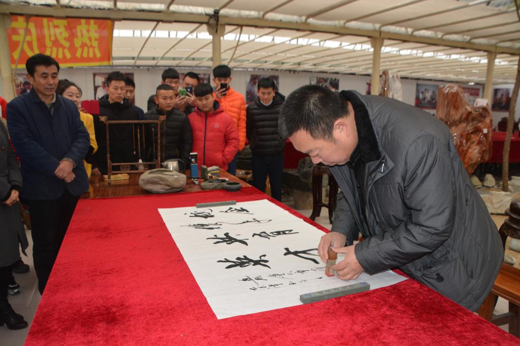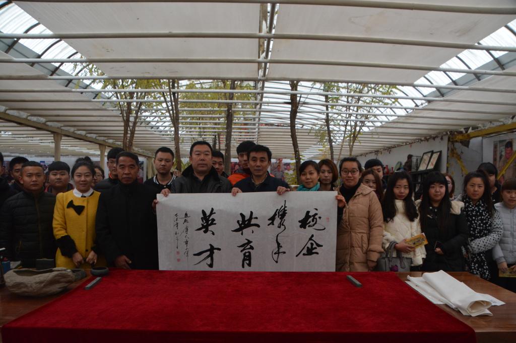 最后,丛树林副校长和章永军董事长共同为基地揭牌,至此,中国辽砚·KYTY.COM开云大学生创业实习实训基地正式成立。揭牌仪式后,我校学生参观了中国辽砚展销中心,对精美的辽砚叹为观止,章永军董事长更是现场即兴创作书法“校企携手共育英才”赠与我校,表达了其与我校深度合作的信心和决心。
