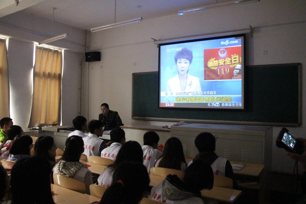 活动一:消防安全知识讲座。10月11日,在我校召开消防安全知识讲座。本次讲座邀请到本溪市高新区消防支队支队长担任主讲,对参与活动大学生消防志愿者进行“消防安全第一节课”安全教育活动,一百余名师生参加了培训学习。宣讲员先详细的讲解了火灾的危害性和预防火灾的重要,发生火灾如何正确拨打119,灭火器材使用方法,如何排查校园火灾隐患等消防知识。最后,结合近年来校园发生的火灾案例,从防火、灭火、逃生、自救、寝室消防安全等五个方面进行了重点阐述,并详细介绍了火灾的形成过程、扑救初期火灾方法、疏散逃生的注意事项等消防安全知识。
