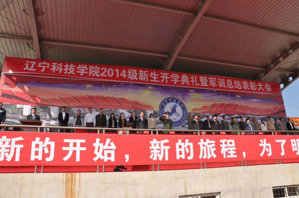 9月26日上午,军歌嘹亮,豪情满天,我校2014级新生开学典礼暨军训总结表彰大会隆重举行。学校党委书记温景文,校长、党委副书记赵文珍,副校长吴国玺、丛树林、李金成,纪委书记邓献宇,承担我校军训任务的武警本溪支队政委王思华上校,副参谋长王延滔少校、相关职能部门、各院系负责人,新生班主任、全体辅导员和全体教官出席了大会。副校长丛树林主持本次大会,3263名新生整齐着装,气宇轩昂,用出色的表现为14天的军训划上圆满句号,完成了大学第一课。