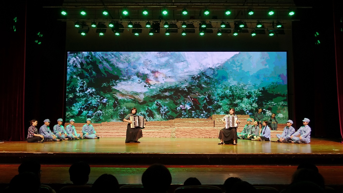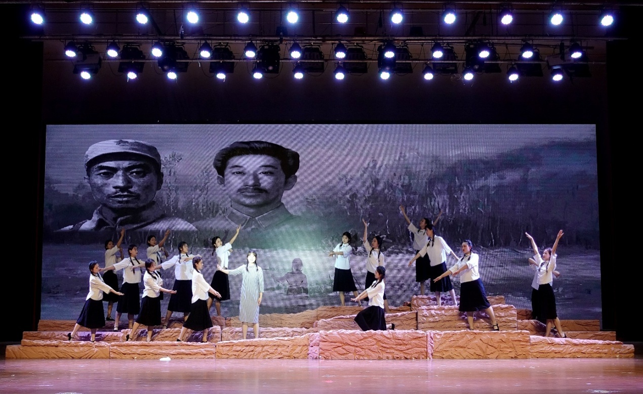 弘扬革命精神,传承红色基因。自深入开展学习贯彻习近平新时代中国特色社会主义思想主题教育以来,我校不断创新教育形式,深挖辽宁六地红色文化资源,打造“剧目+思政”的育人模式,真正让主题教育入脑入心。《民族脊梁》大型原创音乐情景剧,通过歌曲、舞蹈、乐器等多种艺术形式,演绎再现了抗战时期辽宁作为抗日战争起始地、新中国国歌素材地和东北抗联游击根据地长达十四年的波澜壮阔的我党我军历史上艰苦卓绝的斗争篇章。剧目共分为“义勇军魂”“气贯长虹”“患难与共”“逐梦前行”四个乐章,通过重要历史节点、经典历史场景和主要英雄人物时空重现,生动诠释了“忠诚于党的坚定信念,勇赴国难的民族大义,血战到底的英雄气概”的东北抗联精神基本内涵。生动形象地展现了辽东地区涌现出的邓铁梅、唐聚五、杨靖宇、李红光、李敏焕、李德衡、宋铁岩等爱国志士和抗战英烈的群体形象,弘扬宣传了伟大的抗战精神、抗联精神,极大地鼓舞感染新时代青年一代崇尚英雄、学习英雄、励志报国。