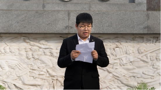 党员代表岳嘉乐在纪念碑下进行主题演讲。他表示,先烈们用生命铺就的道路,需要新时代的青年用奋斗接续前行。实验室里跳动的数据曲线、车间里轰鸣的轧机声,都是新时代“冶金报国”的生动注脚。作为新时代的高素质应用型人才,定要以“千锤百炼始成钢”的韧劲攻克专业难题,用创新成果告慰先烈英魂,让红色基因在冶金报国的实践中永续传承。