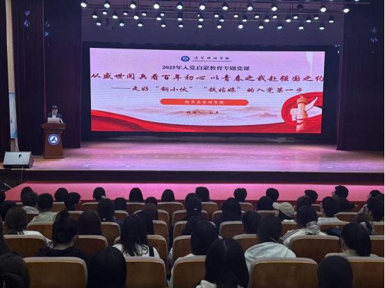 为引导学生坚定理想信念,激发入党热情,端正入党动机,10月9日,经济与管理学院在大学生活动中心开展了2025级新生入党启蒙教育专题讲座。讲座由学院党总支书记孙丰主讲,与学院全体2025级新生共同开启信仰之旅。
