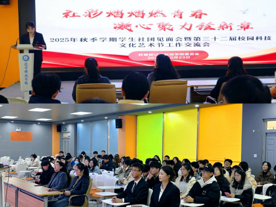 为进一步加强学生社团组织建设,推动校园文化高质量发展,10月23日,校团委在智慧东楼302教室召开2025年秋季学期学生社团见面会暨第三十二届校园科技文化艺术节工作交流会。会议由校团委指导、社团管理部、社团服务中心承办,校团委老师、分管社团工作的校学生会主席团成员、社团服务中心与社团管理部部长以及各学生社团负责人参加。