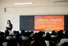 为进一步加强学生干部队伍建设,明确新学期工作方向,10月22日,电气与自动化工程学院召开了“回望耕耘路,奋进新征程”学生干部会议。会议由辅导员刘彬主持,学院党总支副书记李涛,全体辅导员及第三届全体学生干部参加。