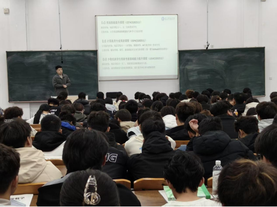 为加强推进学风建设,营造良好学习氛围,充分发挥兼职辅导员在学生英语学习中的指导作用,全面提升大学生的英语综合水平,10月29日,电子与信息工程学院在博雅楼B座4-109教室开展兼职辅导员见面会暨英语四级学习动员会,新任兼职辅导员外语学院牛慕阳、何湘钰担任此次会议主讲人。会议由学院党总支副书记潘丽娜主持,2025级辅导员与2025级学生共同参加了动员会。