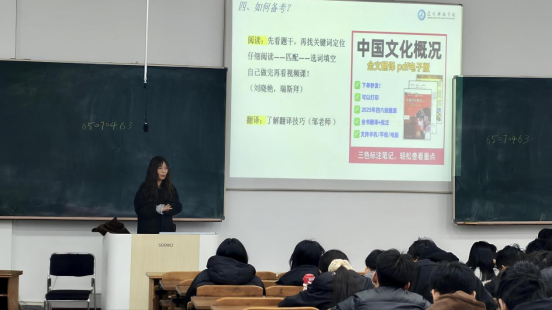 为积极响应学校关于加强学风建设的号召,进一步营造积极浓厚的学习氛围,11月18日,资源与土木工程学院在博雅楼4区109教室举办“四级高分攻略”专题讲座。本次讲座以“精研英语能力,赋能英语备考”为主题,由学院兼职辅导员即外语学院孙璐瑶老师担任主讲,学院近百名学生参加。