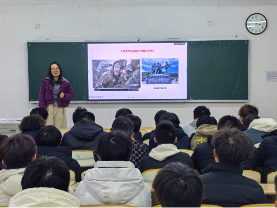 课上,徐轩昂讲授了中国人民抗日战争胜利是近代以来中华民族由衰败走向复兴的重大历史转折点,同时讲解了为什么要弘扬伟大抗战精神以及当代青年学生如何弘扬伟大抗战精神。她强调,当代青年学生要在专业学习中深耕,在社会实践中锤炼,矢志传承抗战精神,将爱国情怀转化为实际行动。