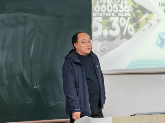 代文双首先以“一体推进民营经济健康发展”为切入点系统解析了当前民营经济的作用、市场环境优化及中国经济的韧性优势,同时以多维度数据详细展示了民营经济营商环境优化的具体举措。他结合有效市场和有为政府的制度优势,表明中国在外部冲击下,仍能靠政策精准发力优化环境,进而激励同学们看清民营经济的政策支持与市场潜力,明确未来就业创业的方向机遇,密切关注经济发展政策,为国家经济发展贡献力量。
