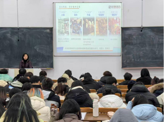 课堂上,纪丽岩从回顾成就、总结经验、谋划未来三个维度展开讲解,同时结合“哪吒”“黑神话悟空”等典型案例,层层递进,娓娓道来。她指出,“十四五”时期,经济社会发展坚持党的全面领导、坚持以人民为中心、坚持新发展理念、坚持深化改革开放、坚持系统观念,这既是“十四五”时期取得辉煌成就的根本保证,更是青年学子成长成才的行动指南。最后,纪丽岩强调,“十五五”是承上启下的关键期,机遇与挑战并存。她向同学们提出殷切期望,鼓励同学们坚定专业信念、锤炼实践本领、勇担时代重任、践行青春使命,同学们深受鼓舞,反响热烈,纷纷表示将以此次课程为契机,用青春绘出奋斗底色。